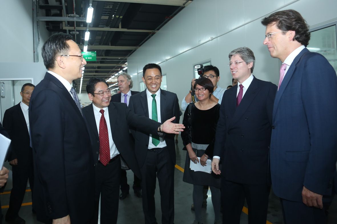 舍弗勒集团监事会主席乔治·F. W.·舍弗勒(右二)、舍弗勒集团首席执行官克劳斯·罗森菲尔德(右一)、舍弗勒大中华区首席执行官张艺林博士(左二)和舍弗勒(南京)有限公司总经理蒋勇(左三)欢迎南京市市长缪瑞林(左一)。